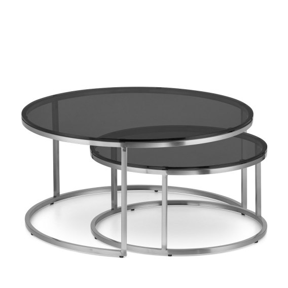 Argan zestaw okrągłych stolików kawowych szkło styl glamour Chrom Grafitowy