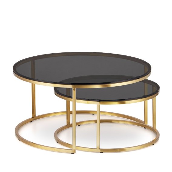 Argan zestaw okrągłych stolików kawowych szkło styl glamour Złoty Grafitowy