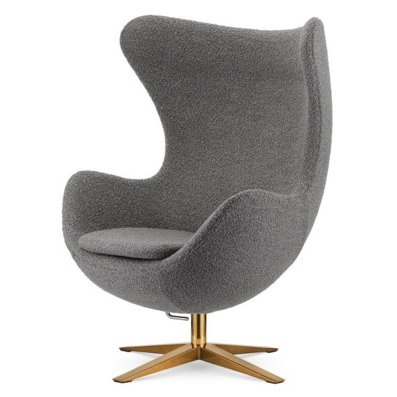 Fotel Egg Jajo Premium Bukla Treviso Teddy obrotowy z funkcją bujania Ciemnoszara bukla (A-02) Złoty szeroka