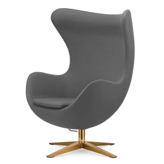 • Fotel Egg Jajo Premium Kaszmir Treviso obrotowy z funkcją bujania Jasnoszary (#30) Złota szeroka
