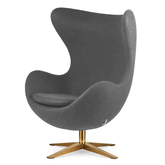 • Fotel Egg Jajo Premium Kaszmir Treviso obrotowy z funkcją bujania Szary (#3a) Złota szeroka