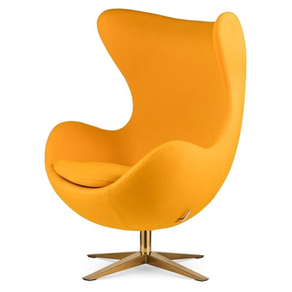 • Fotel Egg Jajo Premium Kaszmir Treviso obrotowy z funkcją bujania Żółty (#75) Złota szeroka