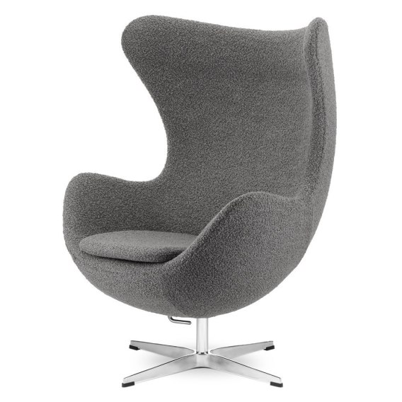 Fotel Egg Treviso Bukla Ciemnoszara obrotowy komfortowy i elegancki, czarna podstawa