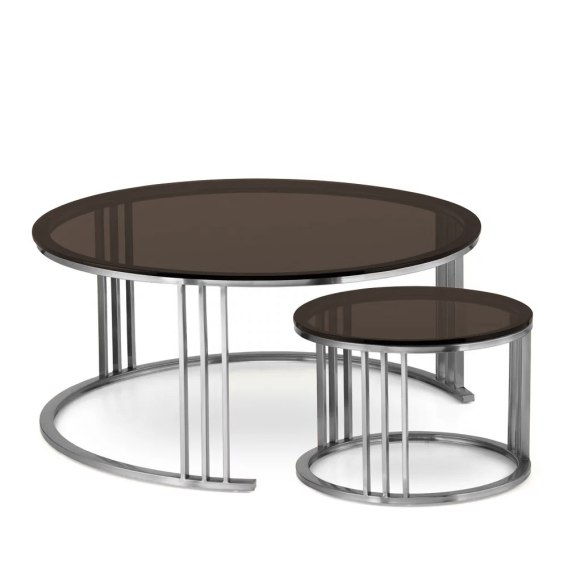 Goldwell zestaw okrągłych stolików kawowych szkło styl glamour Chrom Brązowy 80cm + 50cm Goldwell zestaw okrągłych stolików kawowych szkło styl glamour Chrom Brązowy 80cm + 50cm