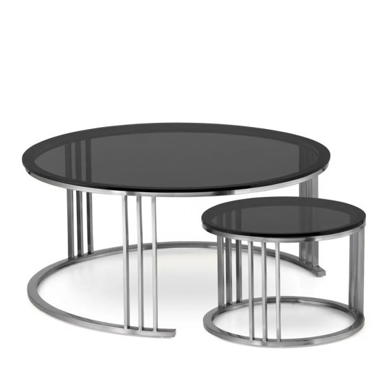 • Goldwell zestaw okrągłych stolików kawowych szkło styl glamour Chrom Grafitowy 90cm + 45cm