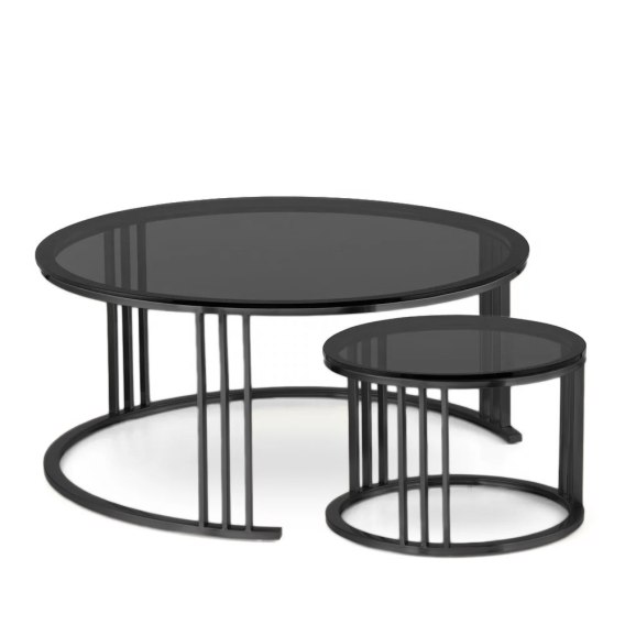 Goldwell zestaw okrągłych stolików kawowych szkło styl glamour Czarny Grafitowy 70cm + 45cm