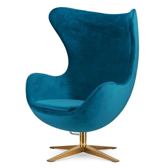 Nowoczesny Fotel Jajo Egg Obrotowy Treviso Niebieski Welur Premium na Złotej Podstawie