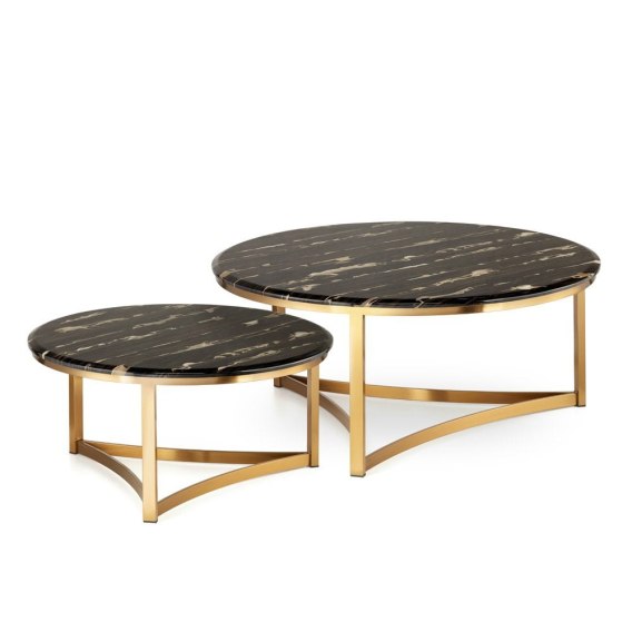 Stoliki Marron zestaw okrągłych stolików kawowych marmur stylu glamour Czarny Złoty