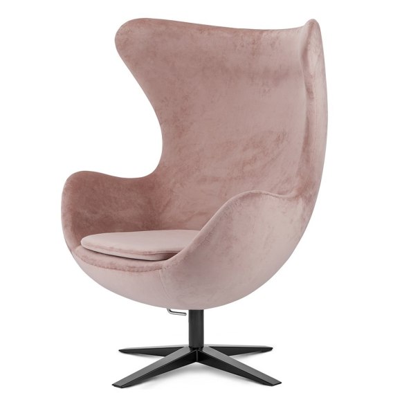 • Stylowy fotel Egg Jajo Premium pudrowy róż Velvet z czarną podstawą do salonu